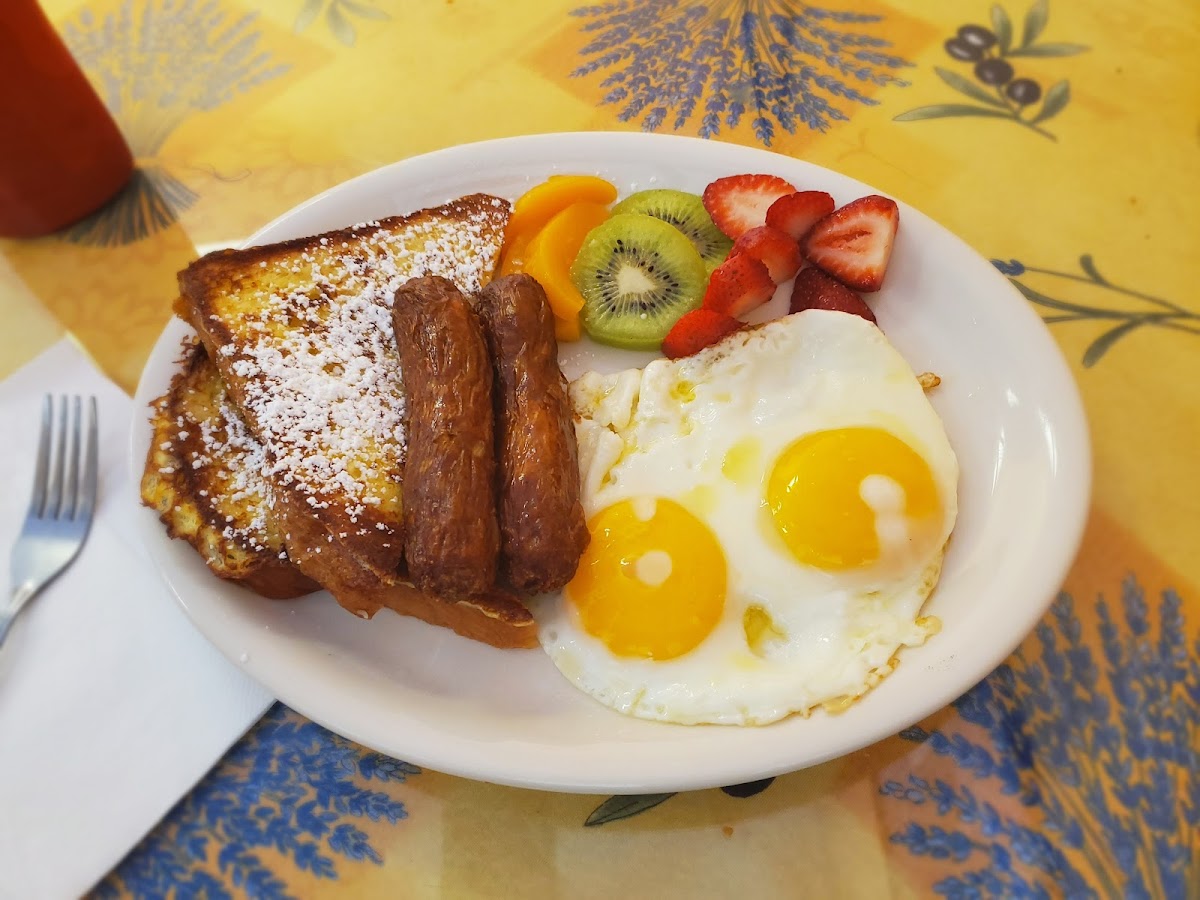 Small place with a decent menu and assortment of pastries. Fairly priced, easy lot parking, and maybe 8 or so tables for 4. Still need to go back to try other things. Order in the middle. Small fruit tart was good as was the chicken salad. Under 8 total, picked out the raisins from the salad because raisins are just gross. Come give them a visit.